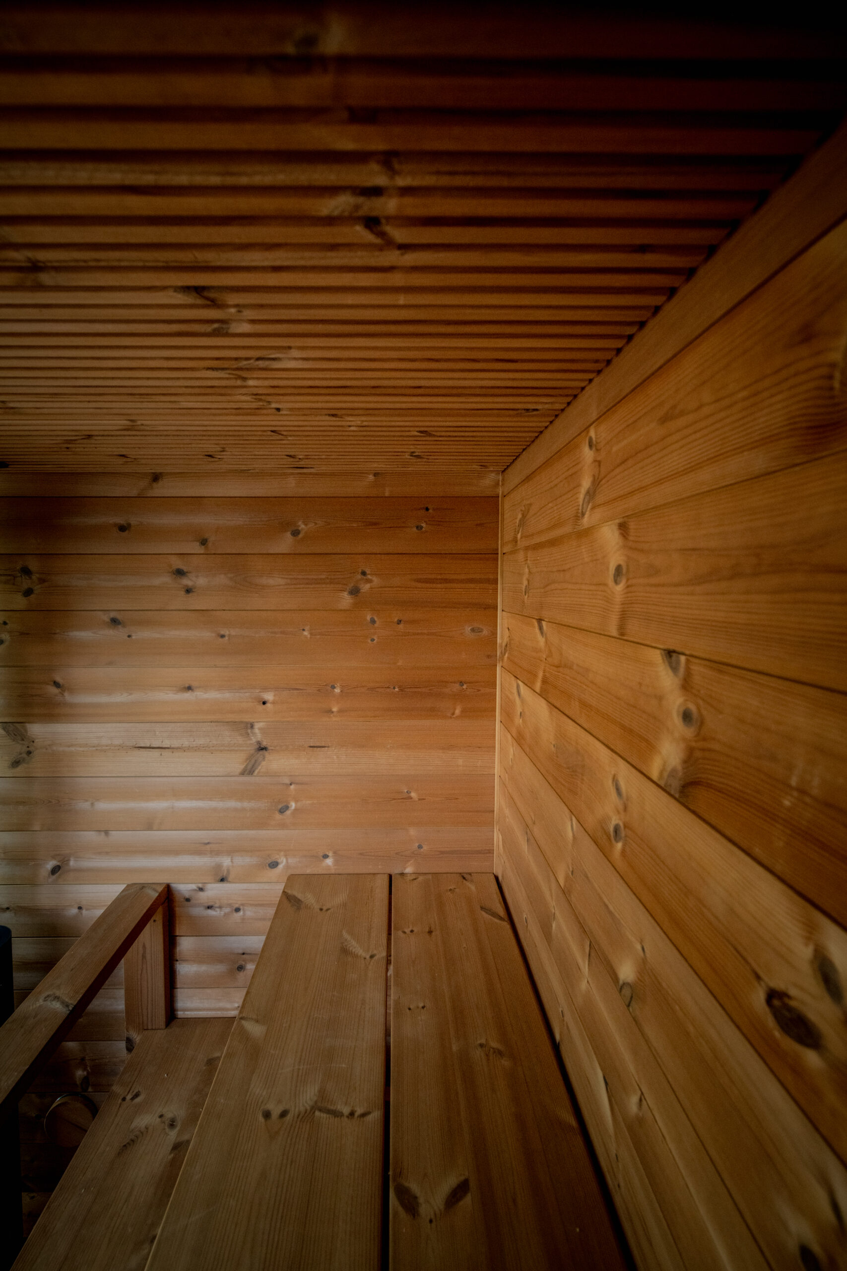Realizzata in thermotreated pine (legno di pino termotrattato), è consegnata completamente assemblata, pronta da posizionare su un supporto stabile. Le pareti e il tetto sono isolati, mentre la finestra frontale a doppio vetro con gas argon garantisce eccellente isolamento termico anche in condizioni estremamente fredde. La porta in vetro con serratura magnetica e maniglia in legno, può essere installata sia nel lato destro che nel lato sinistro della sauna.