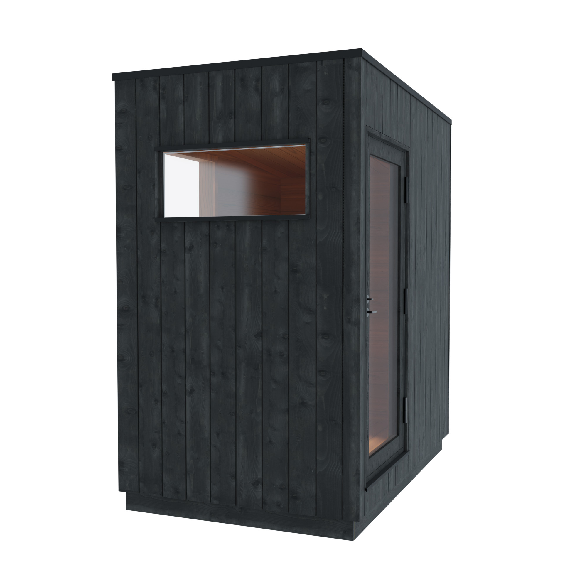 Il modulo offre due ingressi: uno interno, che si collega direttamente alla sauna, e uno esterno, per un facile accesso indipendente. La porta è robusta, mediante serratura a chiave con sistema Abloy, per garantire sicurezza quando la sauna non è in uso.