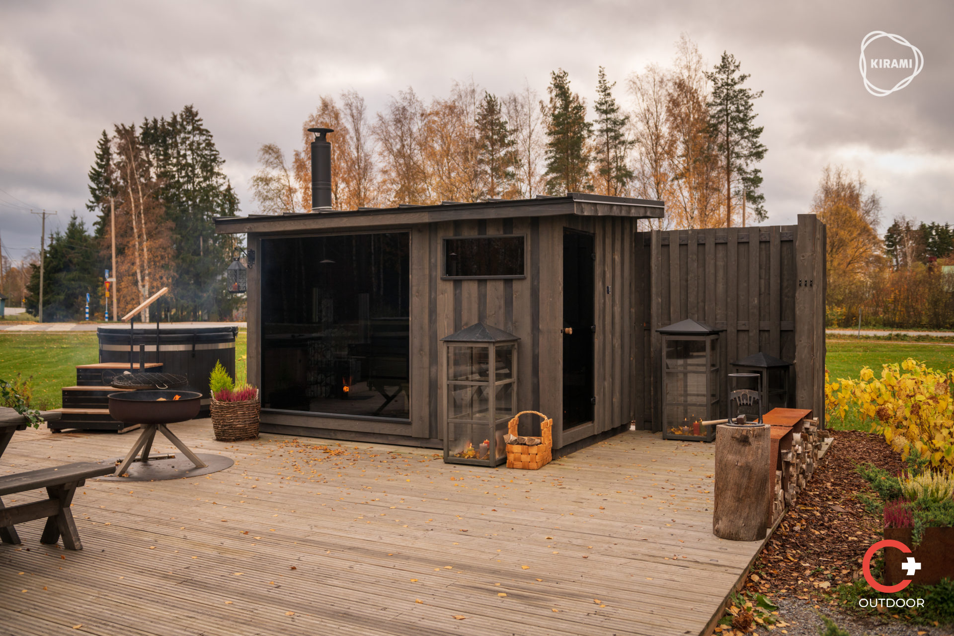 Il Kirami FinVision® – Spogliatoio S Misty è un modulo cambio elegante e pratico, perfetto complemento alla tua sauna da esterno. Costruito con pannelli in abete termotrattato all’esterno e pioppo termotrattato all’interno, garantisce un’estetica armoniosa e una sensazione accogliente in ogni stagione, grazie al pavimento, alle pareti e al soffitto ben isolati.